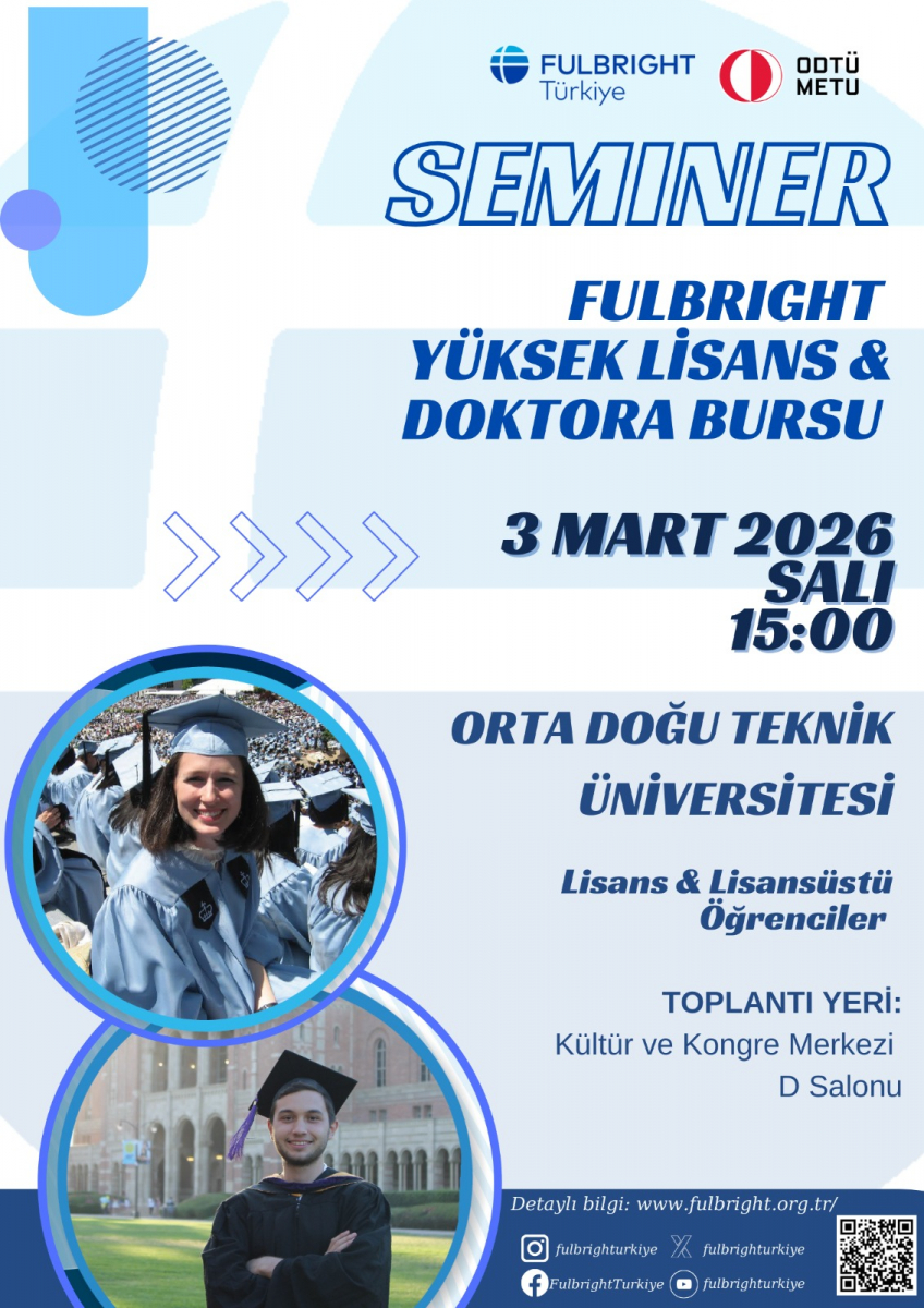 Fulbright Türkiye Ofisi, ABD'de yüksek lisans ve doktora eğitimi planlayan ODTÜ öğrencilerine yönelik bir bilgilendirme oturumu düzenleyecektir.